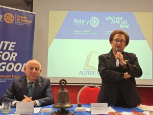 170 libri, scritti da autori soci dei Club Rotary appartenenti al “Distretto Rotary 2101” della Campania, diretto dal Governatore Angelo Di Rienzo, sono stati donati a cinque ospedali della Campania, custoditi in una bacheca di vetro, in modo da farli leggere ai pazienti ricoverati nei vari reparti. L’iniziativa rotariana rientra nell’ambito del progetto distrettuale rotariano “Autori rotariani in corsia” ideato e organizzato da quattro anni dalla dottoressa Giovanna Postiglione, per tutti affettuosamente Nanà, Past President del “Rotary Club Nocera Inferiore Apudmontem”:” Abbiamo già iniziato a donare agli ospedali della Campania, uno per provincia, una bacheca di vetro contenente almeno una copia di tutti i libri donati dai ventidue autori rotariani che hanno aderito al progetto. Un libro può essere utile ad una persona ricoverata per ritrovare quella serenità momentaneamente perduta”. La Presidente Postiglione ha spiegato che gli Ospedali coinvolti nell’iniziativa sono: il “Ruggi d’Aragona” di Salerno; il “San Giuseppe Moscati” di Avellino, l’Azienda Ospedaliera San Pio – Gaetano Rummo di Benevento;il “ Presidio Ospedaliero “Dottoressa Anastasia Guerriero” di Marcianise e l’Ospedale “Santa Maria delle Grazie” di Pozzuoli. A collaborare alla organizzazione dell’evento e ad accogliere tutti soci che hanno partecipato alla presentazione del progetto, presso il “San Severino Park Hotel” di Mercato San Severino, è stato il presidente del “Rotary Club Salerno Nord dei Due Principati” Vittorio Villari, con la collaborazione dei componenti del Consiglio Direttivo e di tutti i soci:” Una manifestazione che ogni anno cresce sempre di più”. Il progetto coinvolge tutti i soci del “Distretto Rotary 2101”, diretto dal Governatore Angelo Di Rienzo, che ha immediatamente dato il suo appoggio all’iniziativa:” È un progetto che consente ai rotariani del “Distretto Rotary 2101” di essere vicini a persone che vivono un momento di difficoltà, di fragilità, attraverso la scrittura e la lettura. Il Distretto ha deciso di omaggiare con dei libri, scritti da autori rotariani, gli utenti degli ospedali della Campania nello spirito rotariano del servire, si può servire anche donando un libro che può far vivere un momento di serenità, di evasione, ed anche di compagnia in un momento difficile. Grazie a Nanà Postiglione abbiamo servito al di sopra di ogni interesse personale dimostrando di essere “Uniti per fare del bene”. I testi, alcuni dei quali parteciperanno, dal 14 al 18 maggio, al “Salone Internazionale del Libro di Torino”, sono stati scelti da una commissione di soci rotariani presieduta da Giovanna Postiglione e composta da:” Umberto Matrone, Anna Di Mauro, Nicola Prebenna, Gaetano Panariello, Giuseppe Santabarbara, Marco Palmieri. Ogni autore ha donato almeno cinque copie dei suoi libri che sono stati presentati e recensiti con competenza critico-analitica da Giovanna Postiglione. Donato dal Presidente del “Rotary Club di Sorrento”, Claudio de Vito, il libro “Ritorno in Africa. Racconti e frammenti” scritto dal compianto socio del Club di Sorrento, il medico volontario Umberto Aubry; la dottoressa Angelina Capone, del “Rotary Club Sant’Agata dei Goti”, presieduto da Marina Capone, ha donato il suo romanzo “100 Rose Rosse”; il dottor Enzo Capuano, autore di vari romanzi di successo, Past President del “Rotary Club Salerno Picentia”, presieduto da Lucio Bojano, ha donato il suo libro “Quel ponte sul fiordo di Furore”; donati da Massimo Carosella, Presidente del “Rotary Club Novus Ortus” i libri del padre, il compianto Past Governor Antonio Carosella: “Dante e Noi” e” Trittici Vesuviani”; donato dal Past Governor Alessandro Castagnaro il libro “Napoli 14 voci e uno sguardo in giro per la città”; la professoressa Irma De Simone, socia del “Club Inner Wheel Costiera Amalfitana” ha donato il suo libro “Le avventure di Pinocchio. Storia di un burattino” con le illustrazioni di Manuela Vitiello; l’avvocato Anna Di Mauro, socia del “Rotary Club Caserta Luigi Vanvitelli”, presieduto da Francesco Mercurio, ha donato il suo saggio sul processo penale minorile: “Da Eglantyn Jebb al processo al bullo”; il Presidente del “Rotary Club Costiera Amalfitana”, Salvatore Ulisse Di Palma, ha donato i suoi libri: “Gerardo Sasso. Apostolo della Pace”, “Coltivare la Memoria- Il sacrificio di Gaetano Amato”, “Ti Amo”, con i disegni di Paolo Signorino, la ristampa del libro “Vita del glorioso Martire San Pantaleone Medico del 1857” e “Totò a Ravello” scritto da Salvatore Ulisse Di Palma insieme a Giuseppe Gargano; Angelo Di Stasio, socio del “Rotary Club Avellino Est”, presieduto da Floriana D’Ambrosio, ha donato il suo libro di racconti:” Un buon posto per crescere. Li Cunti”; il professor Ciro Formisano, musicista e socio del “Rotary Club Caserta Luigi Vanvitelli”, presieduto da Francesco Mercurio, ha donato la sua silloge di poesie “Assolo d’insieme”; la scrittrice Consuelo Mirto, socia del “Rotary Club Capua Antica e Nova”, presieduto da Eleonora Petrazzuoli, ha donato il suo racconto:” Il Cinema Perfetto”; la scrittrice Monica Oriente, socia del “Rotary E-Club Film&Friends di Villammare”, presieduto da José Carlo Balbi, ha donato il suo libro autobiografico :” Quattro volte me. Le mie rinascite dopo il cancro”; donata dal “Rotary Club Pompei Villa dei Misteri”, presieduto da Pasquale Tarallo, rappresentato dal Presidente della Commissione Eventi del Club, Stefano Grasso, una raccolta di Autori Vari intitolata “Abitare le emozioni” – racconti di ragazzi dei nostri giorni” e “Immagina un racconto”; lo scrittore Marco Palmieri, socio del “Rotary Club Napoli” presieduto da Domenico Salierno, ha donato il suo libro “Settima Sinfonia”; il dottor Paolo Palummo, socio del “Rotary Club Benev