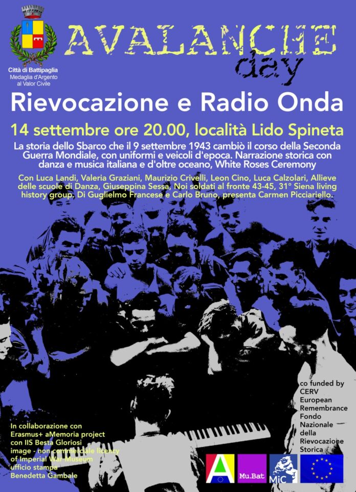 Si terrà sabato 14 settembre, dalle ore 20:00, presso il Lido Spineta di Battipaglia, l’ottava edizione dell’Operazione Avalanche, rievocazione storica dello sbarco di Salerno del 1943, un evento cruciale della Seconda Guerra Mondiale.