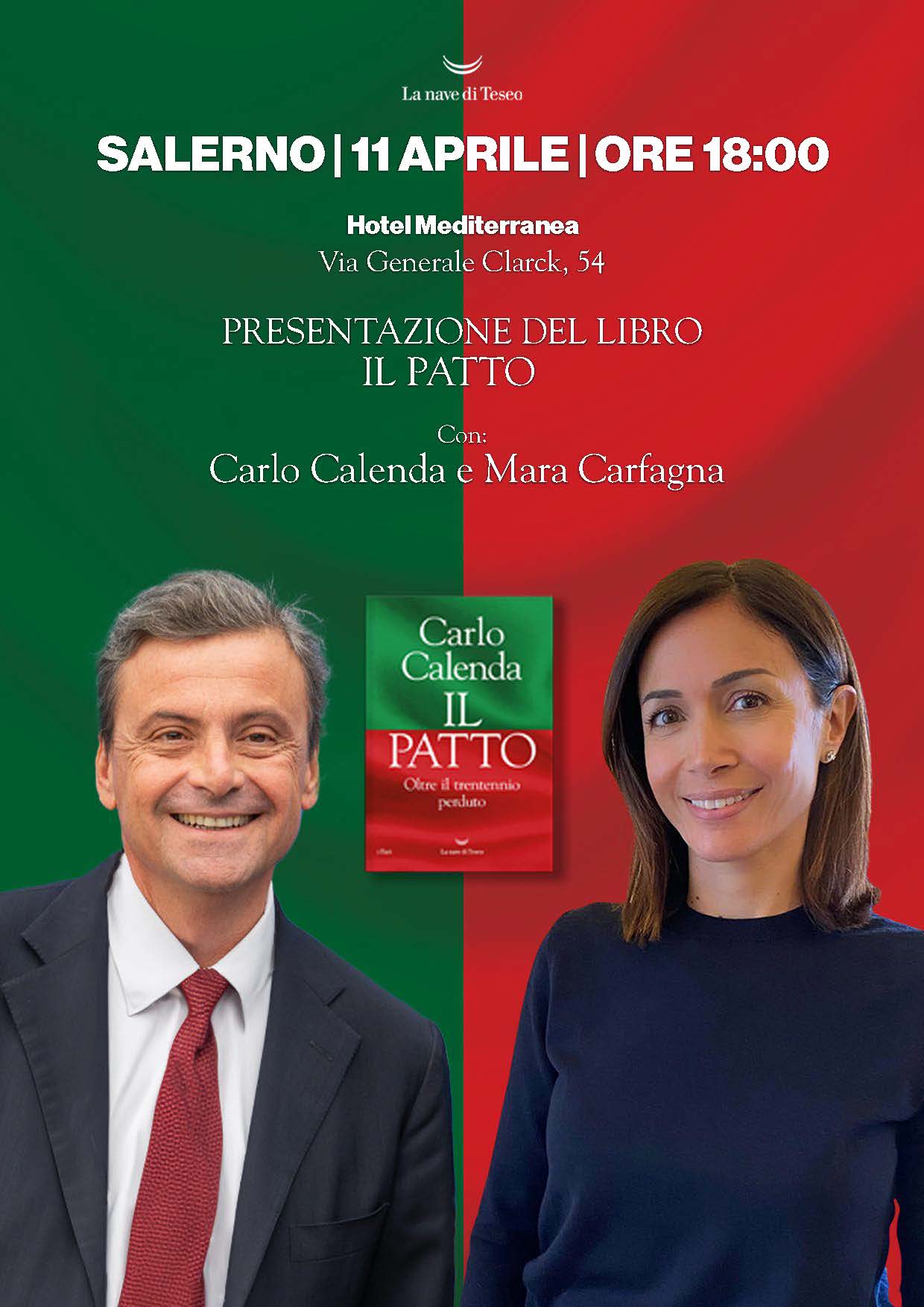 Seguirà, alle ore 18.00, la presentazione del libro “Il Patto” di Carlo Calenda presso l’Hotel Mediterranea in via Generale Clark n. 54.