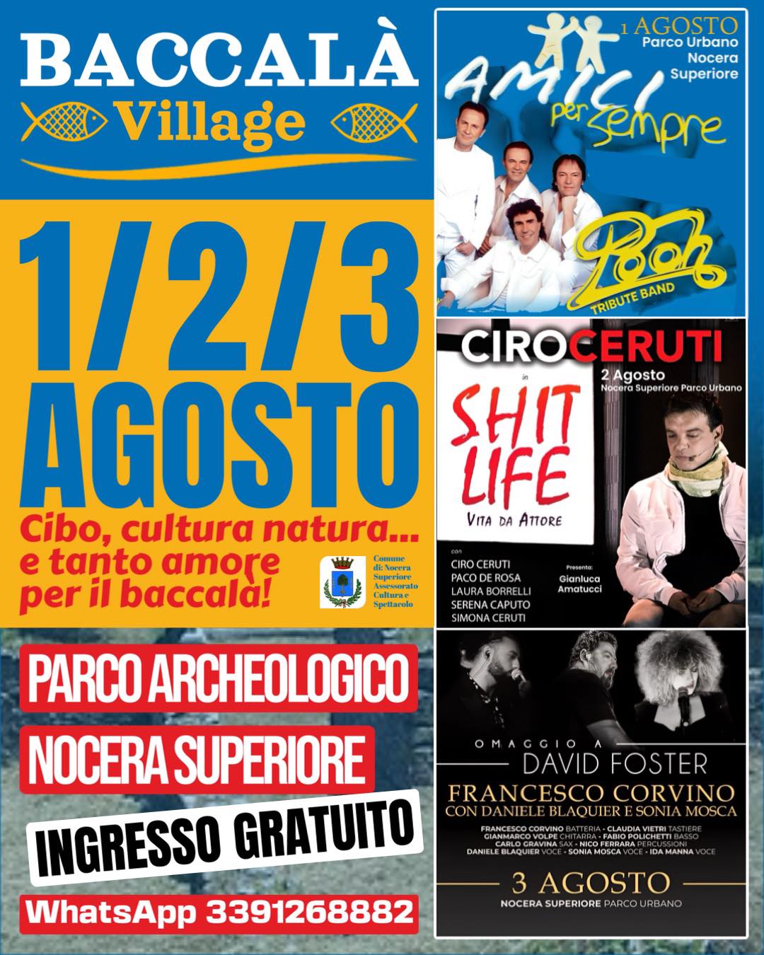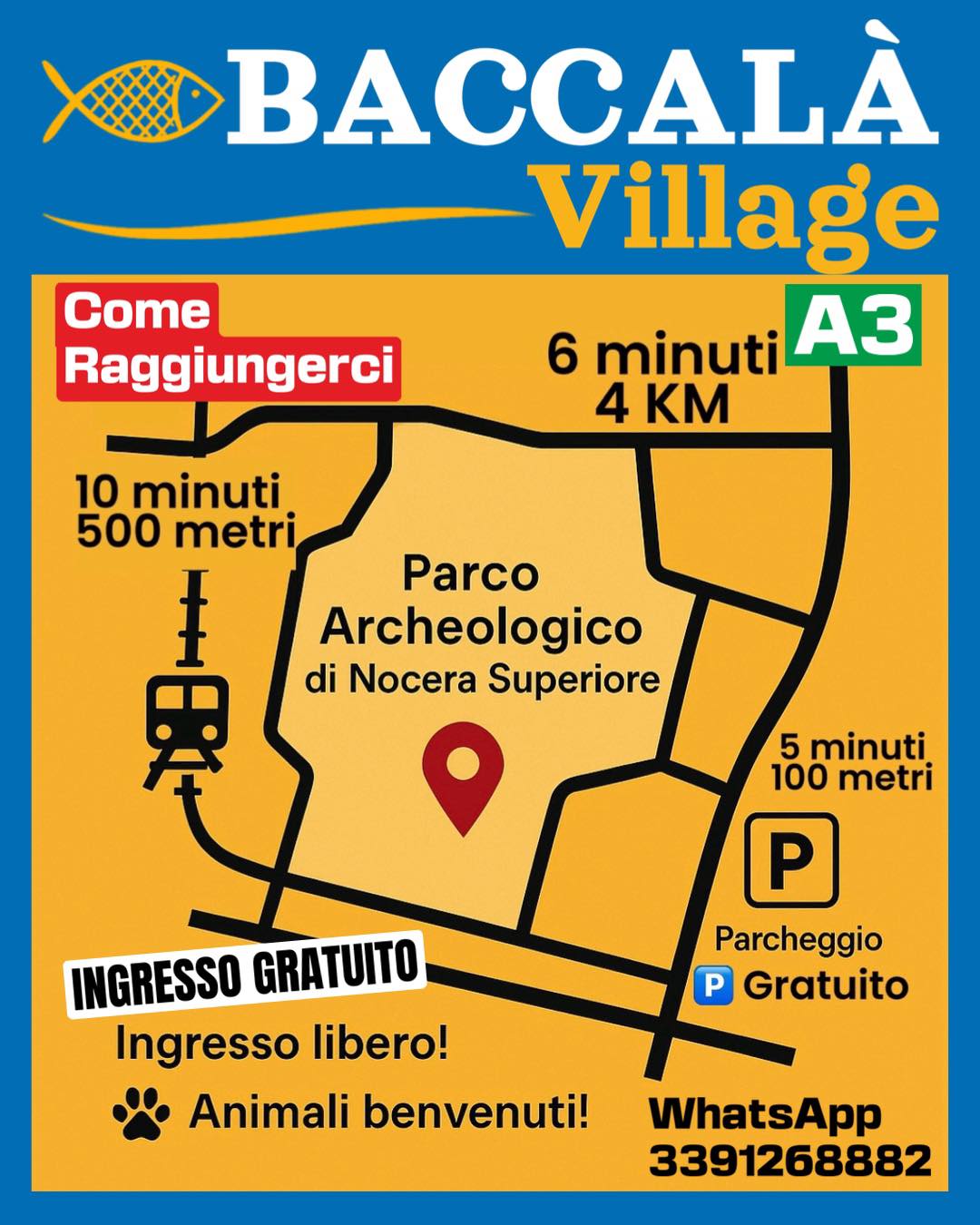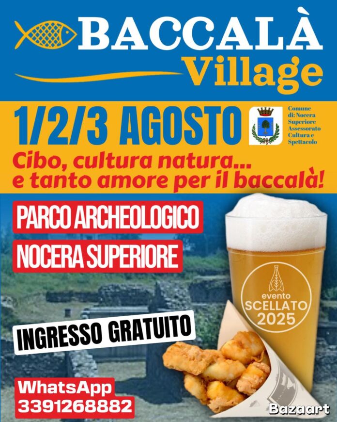 Dopo il grande successo dell’edizione di Sarno, che ha inaugurato il tour 2025 con numeri da record e tanto entusiasmo, il Baccalà Village fa tappa a Nocera Superiore (SA), il 01–02–03 agosto 2025, nel cuore di una delle aree archeologiche più affascinanti della Campania.