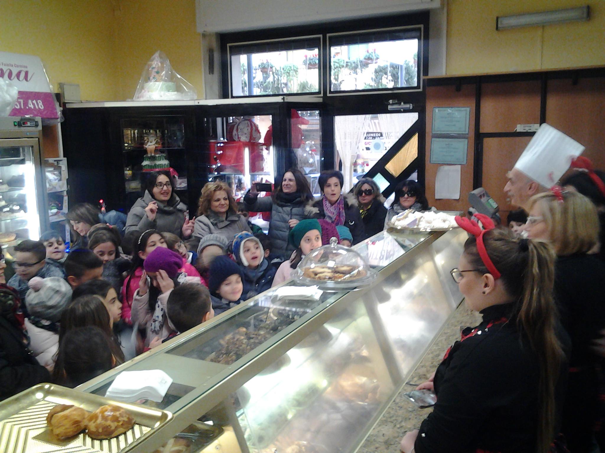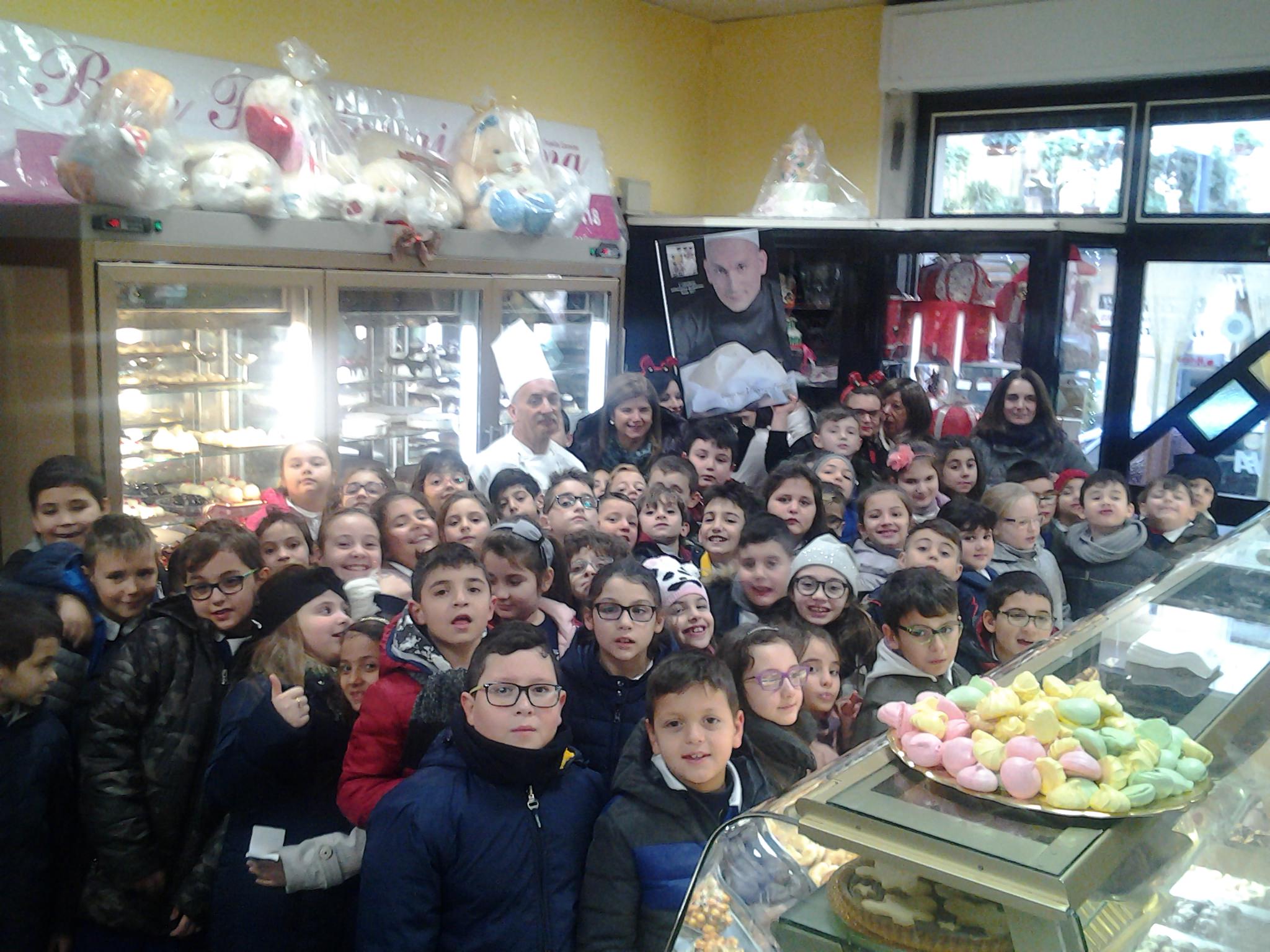 E ieri a San Marzano sul Sarno i bambini della scuola elementare Giovanni Paolo II – Anna Frank, guidati dalla Dirigente Scolastica Dott.ssa Emma Tortora ed accompagnati dagli insegnanti Carraturo Marianna, Amendola Giulia, Pepe Rosa, Sorrentino Sofia, Esposito Silvana, Pauzano Elvira, Nocera Gilda, Langella Colomba, Balzano Annarita, Oliva Anna, Pagano Romina, Santucci Vittoria, Pascale MariaPina, hanno potuto vivere una fantastica esperienza ed assaggiare tanti deliziosi dolci visitando la Pasticceria Pina di Carmine Faiella.