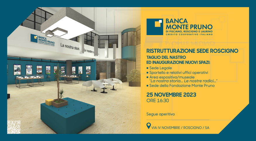“Durante l’ultima Assemblea dei Soci – hanno dichiarato il Presidente Anna Miscia ed il Direttore Generale Michele Albanese – avevamo annunciato la volontà di ridare la giusta dignità a questi luoghi che sono la storia della Banca Monte Pruno. È stato un intervento molto impegnativo, ma che sentivamo di fare per i soci ed i clienti che si servono della Sede di Roscigno e dei suoi uffici. È un territorio che già soffre tanto per diverse ragioni, ma il nostro impegno è quello di mantenere sempre viva la speranza ed onorare, al meglio, le nostre origini, in senso di riconoscenza verso quelle trenta persone che da Roscigno fecero nascere questa grande realtà, unitamente a tutte quelle che, via via, si sono aggiunte, contribuendo con spirito di cooperazione e amore per il territorio. La Sede di Roscigno sarà un luogo dove rimarrà indelebile il segno della storia e del ricordo verso figure indimenticabili. Lo sportello bancario, così concepito, inoltre, migliorerà la fruizione dei servizi, mentre la nostra Fondazione, entità che opera nel campo della beneficenza e dell’utilità sociale, avrà gli spazi che merita, così da proseguire, al meglio, il suo percorso a supporto della comunità. Nei giorni successivi a questa inaugurazione, avvieremo anche i lavori per il restyling della Sala Assemblee della Sede di Roscigno che diventerà un auditorium intitolato al compianto Presidente Michele Albanese”.