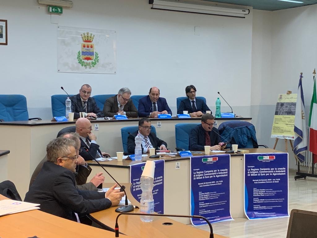 Nell’aula consiliare del Comune di Eboli, con circa duecento partecipanti, alla presenza del Sindaco Massimo Cariello e del consigliere Francesco Rizzo, dell’On.le Luca Cascone presidente della IV commissione Regione Campania, e del responsabile regionale di Sviluppo Campania Dott. Sergio Tanga si è discusso dei tre avvisi che destinano alle imprese operanti nei settori commercio (sia in sede fissa che ambulante) e dell’artigianato con una dotazione finanziaria complessiva di 25 milioni di euro.