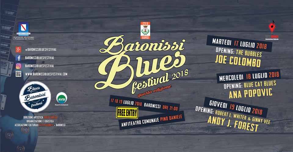 Il suono potente del Baronissi Blues Festival sta per esplodere con un cartellone straordinario (in programma dal 17 al 19 luglio 2018), che spinge oltre i propri limiti, superando le precedenti edizioni e qualsiasi aspettativa nei cultori del genere, ospitando grandi protagonisti della scena musicale internazionale.