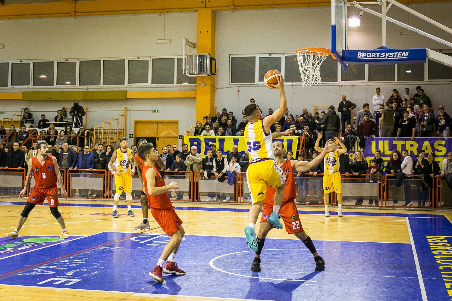 Alla ripresa del gioco, Bellizzi prova ad imprimere un’accelerata alla partita con un parziale di 7-0. Gli ospiti sono però bravi a non disunirsi e con capitan Forino completano la rimonta che riporta il punteggio in parità (45-45). Spinti anche dal calore e dal sostegno incessante dei propri tifosi, i gialloblu gettano il cuore oltre l’ostacolo e danno un’altra spallata al match. Prima la tripla di Trapani, poi i sei punti di Malalu, conditi da due schiacciate che incendiano il palazzetto, e Bellizzi arriva all’ultimo intervallo avanti 54-47.
