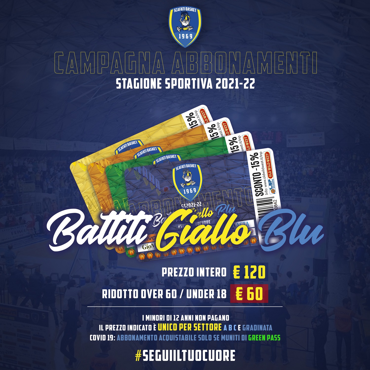 campagna abbonamenti. In un periodo di grandi ristrettezze economiche, abbiamo invece voluto premiare i nostri supporters che, anche lontano dagli spalti, non hanno mai fatto mancare il proprio sostegno, manifestando grande affetto e calore umano. Anche il claim è dedicato a loro: “Battiti Gialloblù” è infatti il riconoscimento della società nei confronti di chi, con grande passione e con un grande cuore, ha saputo essere vicino al team anche da lontano ed ora non vede l’ora di urlare sugli spalti, incitare i propri beniamini e sentire il suono delle scarpe sul parquet. Ed è sempre a loro che abbiamo pensato quando abbiamo stabilito i prezzi delle tessere di abbonamento, sicuramente alla portata di tutti, in particolare dei più giovani e della terza età»