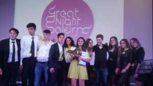 E’ stata la pianista salernitana Benedetta Vecchi, che ha eseguito il “ Notturno op. 9 n. 2 “ di Chopin, a vincere la seconda edizione del “Great Night Salerno”, il Talent Show organizzato dall’Interact Club Salerno, presieduto dalla quindicenne Noemi Ferrara. Secondo classificato il diciassettenne Abhik Zito, che ha eseguito il brano “Jardins sous la pluie” di Debussy. Al terzo posto si è classificato il dodicenne Michele Giorgio Gaggia, della Scuola Media Pirro, che ha commosso tutti recitando il monologo “La Felicità” di Roberto Benigni. Tre veri talenti di cui sentiremo sicuramente parlare tra qualche anno.