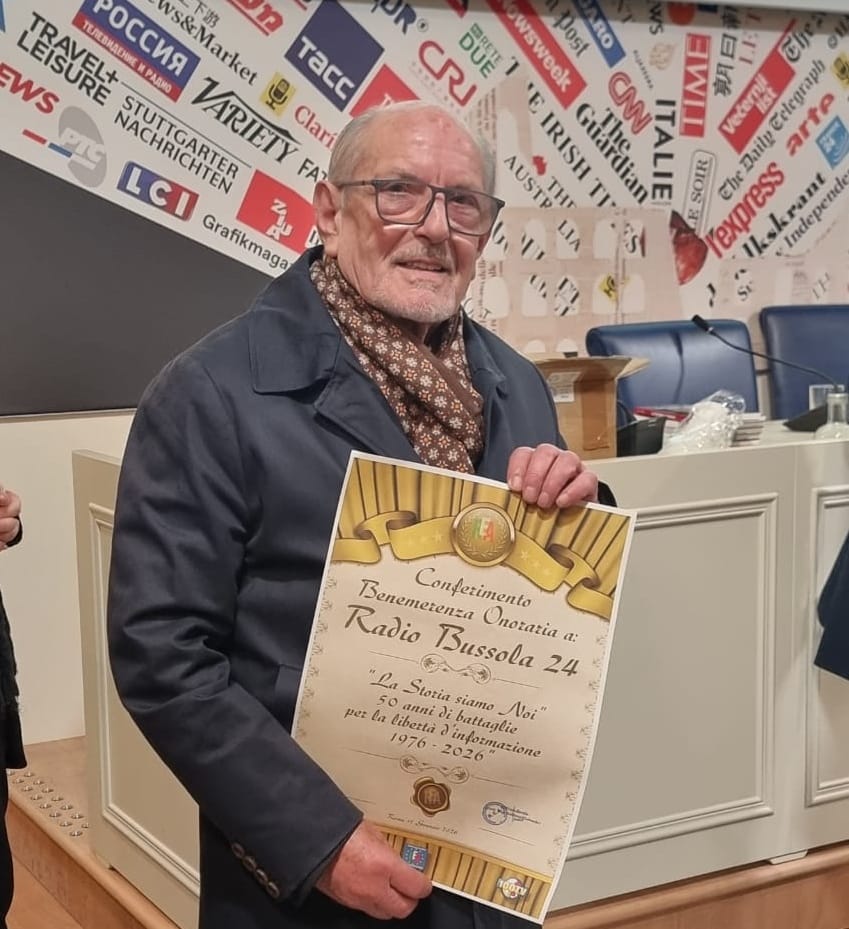 Telecolore e Radio Bussola 24 sono state inserite nella lista delle 32 benemerenze onorarie assegnate a editori e giornalisti che in cinquanta anni di battaglie, dal 1976 al 2026, hanno fatto la storia della radiotelevisione locale italiana.
