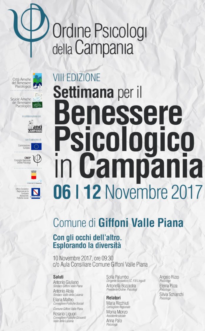 In occasione della VIII edizione della settimana per il Benessere Psicologico in Campania, il Comune di Giffoni Valle Piana ha aderito all’iniziativa promossa dall’ordine degli Psicologi della Campania.
