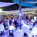 Il tutto accadeva in oltre 2500 metri quadri sea front, che dopo le 23 ha acceso le luci sul grande palco sul mare dove le ore, prima in compagnia dei Quisisona Band e poi di deejay Mario Nicastro, si sono fatte piccole. Tra i numeri anche le più di 500 paia di infradito di gomma che hanno regalato sollievo ad altrettante signore concedendo loro di sfilare i tacchi e ballare rasoterra.