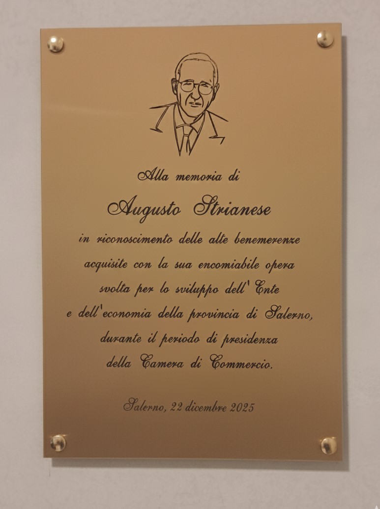L’iniziativa ha voluto rendere un omaggio doveroso a una figura centrale nella storia recente del territorio salernitano. Alla presenza delle autorità civili e del mondo associativo, è stata scoperta la targa che legherà per sempre il nome di Strianese al luogo dove si assumono le decisioni strategiche per l’economia locale.