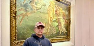 La star di Hollywood James Franco in visita agli Uffizi