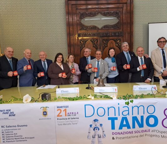 “TANO, il robot dalle fattezze umanoidi, donato dai Club Rotary all’Unità di Oncologia Pediatrica del Ruggi di Salerno. Dal balcone principale della Provincia calato...