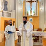 Il parroco, Padre Marco anche lui con mascherina e guanti, ha utilizzato dei bastoncini di ovatta per l’unzione dell’olio e una brocca per bagnare il capo del neonato con l’acqua benedetta. Tutti i dodici invitati con mascherina e distanziati in posti assegnati anche i genitori e il padrino.