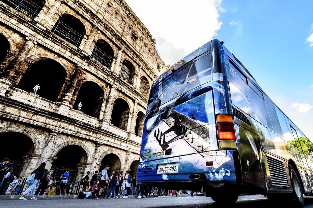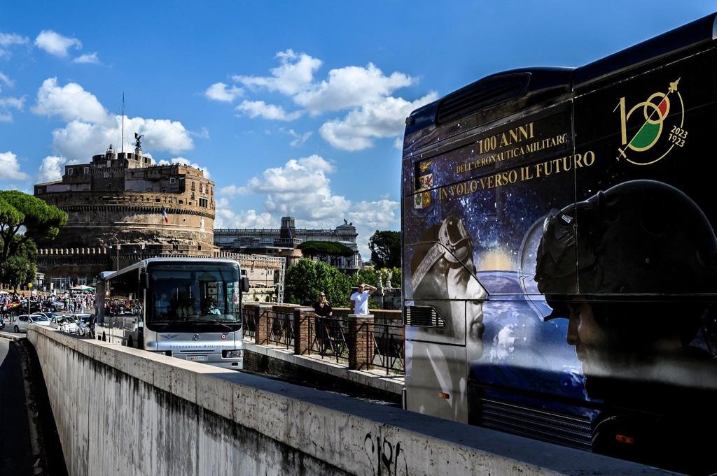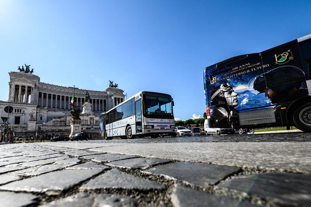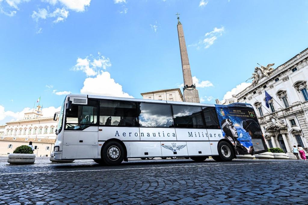 I bus con la livrea del Centenario, che comprende anche il logo e il claim ufficiale, Cento anni dell’Aeronautica Militare – In volo verso il futuro, perché tutti i cittadini, non solamente gli appassionati del volo, possano emozionarsi e riconoscere l’impegno dell’AM a favore della collettività, sono già in circolazione sulle strade di Roma e anche presso le città che ospitano i principali reparti dell’Arma Azzurra.