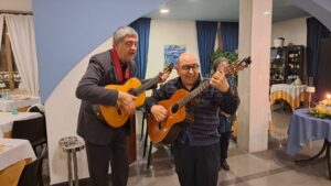 La Presidente Pagnani ha ricordato com’è nata la “Cerimonia delle Candele” e il significato simbolico delle candele che man mano sono state accese. “Simboleggiano le ambizioni e gli sforzi delle donne impegnate nell’Associazione BPW in ogni paese del mondo”. La candela più alta bianca, simboleggiante la Federazione Internazionale, è stata accesa dalla Tesoriera Distrettuale Angela Botta. La candela per gli USA, il più antico gruppo delle affiliate, è stata accesa dalla Past President Nazionale Caterina Mazzella. Sono state accese poi le altre candele bianche riferite alle sei nazioni fondatrici della IFBPW: quella dell’Italia accesa dalla Presidente Maria Rosaria Pagnani; quella degli Stati Uniti d’America, accesa dalla Segretaria Esecutiva Rosanna Capuano ; quella del Canada, accesa dalla Vicepresidente Fidapa Sezione di Salerno Antonella Capuano; quella della Francia, accesa dalla Past President Dina Oliva Crimaldi; quella del Regno Unito accesa dalla Tesoriera del Club Anna Maria Lurgi; quella dell’Austria, accesa dalla socia fondatrice della Sezione Fidapa di Salerno nata circa 65 anni fa , Nietta Carucci Penta. La candela blu è stata accesa dalla dottoressa Paky Memoli. La candela rosa, simboleggiante le socie individuali in Danimarca, è stata accesa dalla socia Maria Rosaria Landi. La candela rossa contro la violenza sulle donne è stata accesa dalla socia Sofia Cammarano; quella rossa per la Pace in Ucraina è stata accesa dalla socia Angela Risolia; quella rossa per la Pace in Medio Oriente è stata accesa dalla Past President del Club di Sorrento Maria Giovanna Maglio. Per ultima è stata accesa la candela verde, emblema della speranza e dell’avvenire, da Angela Botta e Roberta D’Amato. Durante la serata sono state presentate tre nuove socie: Maria Volturale, Maria Giottini e Antonella Siani. La Preghiera Internazionale è stata letta dalla socia Antonietta Mangone. Le socie Gabriella Gentile, Elisa Sparano Bosco e Maria Monica hanno declamato alcune poesie dedicate alle donne e alla Pace. Il duo Marino Cogliani e Enrico Siniscalchi, ha eseguito alcune delle canzoni più belle del repertorio classico napoletano. Presenti: il professor Rocco Risolia, Past President dell’Associazione Lucana “Giustino Fortunato” di Salerno e il professor Francesco D’Episcopo, che ha declamato il testo di “Pianefforte ‘e notte” di Salvatore Di Giacomo.