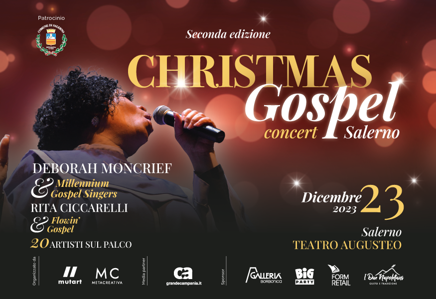 Sabato 23 dicembre 2023, nella splendida cornice del Teatro Augusteo di Salerno, ritorna per la II edizione dopo lo straordinario successo dello scorso anno, l’emozionante “Christmas Gospel Concert 2023”, uno spettacolo ricco di ritmo, energia e passione per celebrare la magia del Natale.