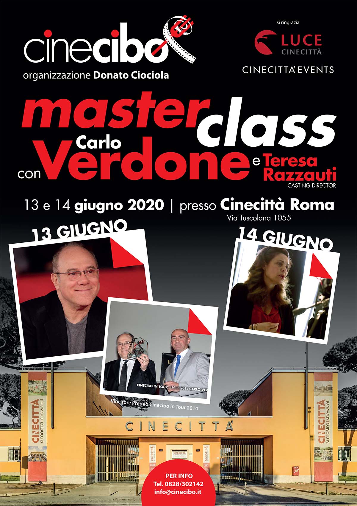 Sono aperte le iscrizioni per una nuova MasterClass Cinecibo, il Festival ideato e diretto da Donato Ciociola. Grazie alla partnership con Luce Cinecittà e Cinecittà Events, il workshop, della durata di due giorni, si terrà a Roma negli studi di Cinecittà sabato 13 e domenica 14 Giugno 2020 e si articolerà in lezioni teoriche e interpretazione di scene davanti alla telecamera.