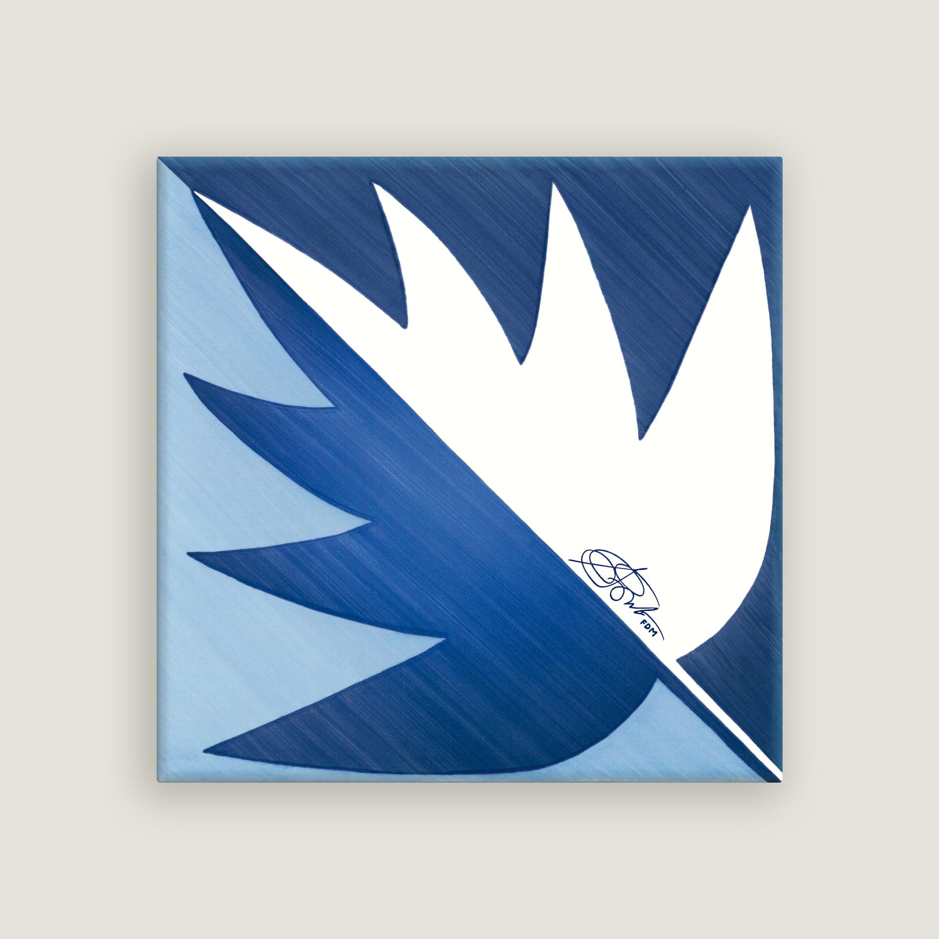 Oggi le maioliche della collezione Blu Ponti sono riprodotte artigianalmente – con gli stessi smalti, supporti e colori del progetto originale – dai maestri decoratori di Ceramica Francesco De Maio, seguendo scrupolosamente il progetto originale, documentato da schizzi, tavole acquerellate e fotografie d’archivio delle fasi di lavorazione.