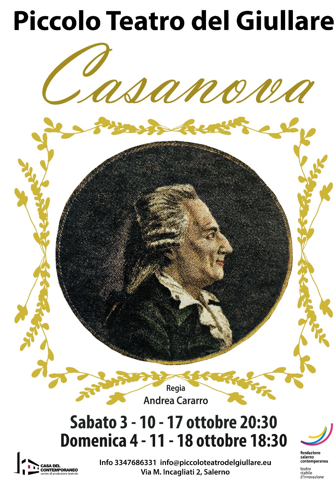 Al via la stagione 2020/2021 del Piccolo Teatro del Giullare di via Incagliati (traversa via Vernieri) a Salerno. Il cartellone, con la direzione artistica di Virna Prescenzo, si aprirà con la prima di “Casanova”, per la regia di Andrea Carraro.