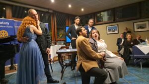 “Che gelida manina. Se la lasci riscaldar”  canta Rodolfo, il giovane scrittore che con la sua mano sfiora quella di Mimì, la  giovane ricamatrice di fiori  che, in cerca di fuoco per riaccendere la candela del suo lume, bussa alla porta dell’appartamento in soffitta che Rodolfo divide con i suoi amici: artisti poveri in cerca di fortuna dediti alla vita bohemièn.“ Mi chiamano Mimì, ma il mio nome è Lucia”, racconta la giovane fanciulla, mentre al buio (nel frattempo si è spento anche il lume  che illuminava la stanza) cerca con Rodolfo, inginocchiato come lei sul pavimento,  la chiave della sua stanza che si è accorta di aver perso. Rodolfo la trova per primo, ma la nasconde in una tasca, desideroso di passare ancora un po’ di tempo con Mimì e di conoscerla meglio. Le due celeberrime arie “Che gelida manina” e “Mi chiamano Mimì”  di questo primo quadro, sono tra le più belle  dell’opera  più famosa di Giacomo Puccini : “La Bohéme”, che è stata magistralmente rappresentata nella grande sala del ” Circolo Canottieri Irno” di Salerno,  che per una sera si è trasformata in un Teatro dell’Opera, grazie alla perfetta organizzazione  dei Club Rotary di Salerno e del “Distretto Rotary 2101”, e grazie alla collaborazione del “Conservatorio Giuseppe Martucci” di Salerno, diretto dal Maestro Fulvio Artiano  che ha consentito a sei giovani e straordinari  cantanti, coordinati dal Maestro Filippo Morace, Docente di Canto Lirico presso il Conservatorio, accompagnati al piano dal Maestro Concertatore,  Simone Matarazzo, di esibirsi in una interpretazione intensa e brillante che ha coinvolto e commosso i tanti soci rotariani presenti. L’evento musicale rientra nell’ambito del progetto distrettuale “Pizza all’Opera” ideato dal Maestro Filippo Morace, Presidente della Commissione Distrettuale che cura il progetto immediatamente accolto dal Governatore del “Distretto Rotary 2101”, Angelo Di Rienzo. “Un progetto che, attraverso l’organizzazione di una serie di eventi, mira a diffondere il teatro e l’opera tra i giovani. Sarà siglato anche un protocollo d’intesa tra il “Distretto Rotary 2101 “ed il “Conservatorio Martucci” di Salerno” -ha spiegato, a nome di tutti i presidenti dei Club Rotary, il dottor Francesco Caggiano, presidente del “Rotary Club Salerno” che ha spiegato che il progetto ha anche una finalità solidaristica:” Il ricavato della serata sarà devoluto alla “Rotary Foundation”. Il Direttore Fulvio Artiano, che è anche componente del Consiglio Nazionale per l’Alta Formazione Artistica e Musicale, di cui è stato Vicepresidente e Presidente Facente Funzioni, ha ricordato che con oltre 1300 allievi il Conservatorio Martucci è considerato uno dei migliori Conservatori in Italia e in Europa:” Il nostro Conservatorio vanta collaborazioni anche con istituzioni straniere ed è il primo in Italia per la sua attività di internazionalizzazione”. Il Maestro Filippo Morace, Past President del “Rotary Club Caserta Reggia”, ha raccontato che “La Bohème”, l‘opera lirica in quattro quadri di Giacomo Puccini, su libretto di Giuseppe Giacosa e Luigi Illica, fu rappresentata, per la prima volta, nel 1896 al Teatro Regio di Torino con la direzione del Maestro Arturo Toscanini e spiegato perchè il progetto si chiama “Pizza all’Opera”:” Quando, nel 1737, per volontà del Re Carlo III di Borbone fu fondato il “Teatro San Carlo” , lo stesso Re, ritenendo che la cultura non dovesse essere riservata a pochi,  organizzava, durante le rappresentazioni all’interno del teatro, delle grandi mangiate alle quali faceva accedere il popolo napoletano”.  Morace ha spiegato che “La Bohème” è un’opera che Puccini scrive per buona parte di getto, con il cuore:” E’ ambientata nella Parigi del 1830 dove quattro amici vivono in un ambiente povero: Rodolfo, lo scrittore romantico, sognatore, interpretato dal tenore Simone Mastragostino, che s’innamora di Mimì, interpretata dal soprano Daniela Magnotta ; il pittore Marcello, interpretato dal baritono Vittorio Di Pietro; il filosofo Colline, interpretato dal basso Alfonso Pesce,  il musicista Shaunard, interpretato dal baritono  Antonio De Rosa e Musetta, interpretata dal soprano Deniz Kayabek, che turba i sogni di Marcello che ne è perdutamente innamorato”. Quattro i quadri dell’opera di Puccini che sono stati presentati in sintesi e raccontati dal Maestro Filippo Morace, narratore d’eccezione, che ha anche presentato tutti gli artisti, suoi allievi, provenienti dal Conservatorio Martucci di Salerno, applauditi a lungo e con entusiasmo dai soci rotariani tra i quali vi erano, presentati dal Prefetto del “Rotary Club Salerno” Alessandro Ruggiero: l’Assistente del Governatore, il professor  Andrea Di Lieto, che ha portato i saluti del Governatore Angelo Di Rienzo;  Il Segretario Distrettuale Esecutivo Mario Petraglia; il Past Governor Marcello Fasano; i Facilitatori Distrettuali Giacomo Gatto e Ciro Senatore;  i presidenti dei Club Rotary:” Gaetano Cuoco, “Salerno Duomo”; Ermanno Lambiase, “Salerno Est”; Lucio Bojano “ Salerno Picentia;  Vittorio Villari “Salerno Nord dei Due Principati”;  Pasquale Montuoro “Cava De’ Tirreni”; Matilde Squillante “Nocera Inferiore-Sarno”; Marianna Giannella “Nocera Inferiore Apudmontem”; Rachele Sorrentino “Scafati-Angri-Realvalle”; Luigi Bisaccia “Battipaglia”; Cesare Pandolfi “Tuscianum 1929” di Battipaglia; Giuseppe Bifulco “Bosco-Trecase-Reale” e la Presidente del “ Club Inner Wheel Salerno Carf”   Marcella Anzolin.          Aniello Palumbo