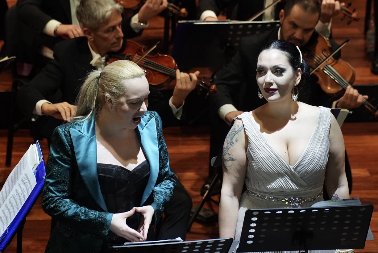 Sul palco l’Orchestra Filarmonica G. Verdi di Salerno guidata dal giovane Leonardo Sini che ha diretto due delle voci più interessanti e ricercate del panorama lirico internazionale, il soprano Anastasia Bartoli, reduce dal trionfo avuto la scorsa estate al Rossini Opera Festival di Pesaro e Vasilisa Berzhanskya, indimenticabile interprete principale del film-opera Il barbiere di Siviglia di Mario Martone e impegnata nella produzione inaugurale 2024 del Teatro alla Scala che hanno proposto per la prima volta insieme, una selezione di celebri arie d’opera e sinfonie tradizionalmente associate alle festività.