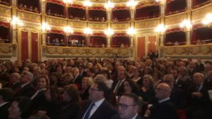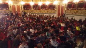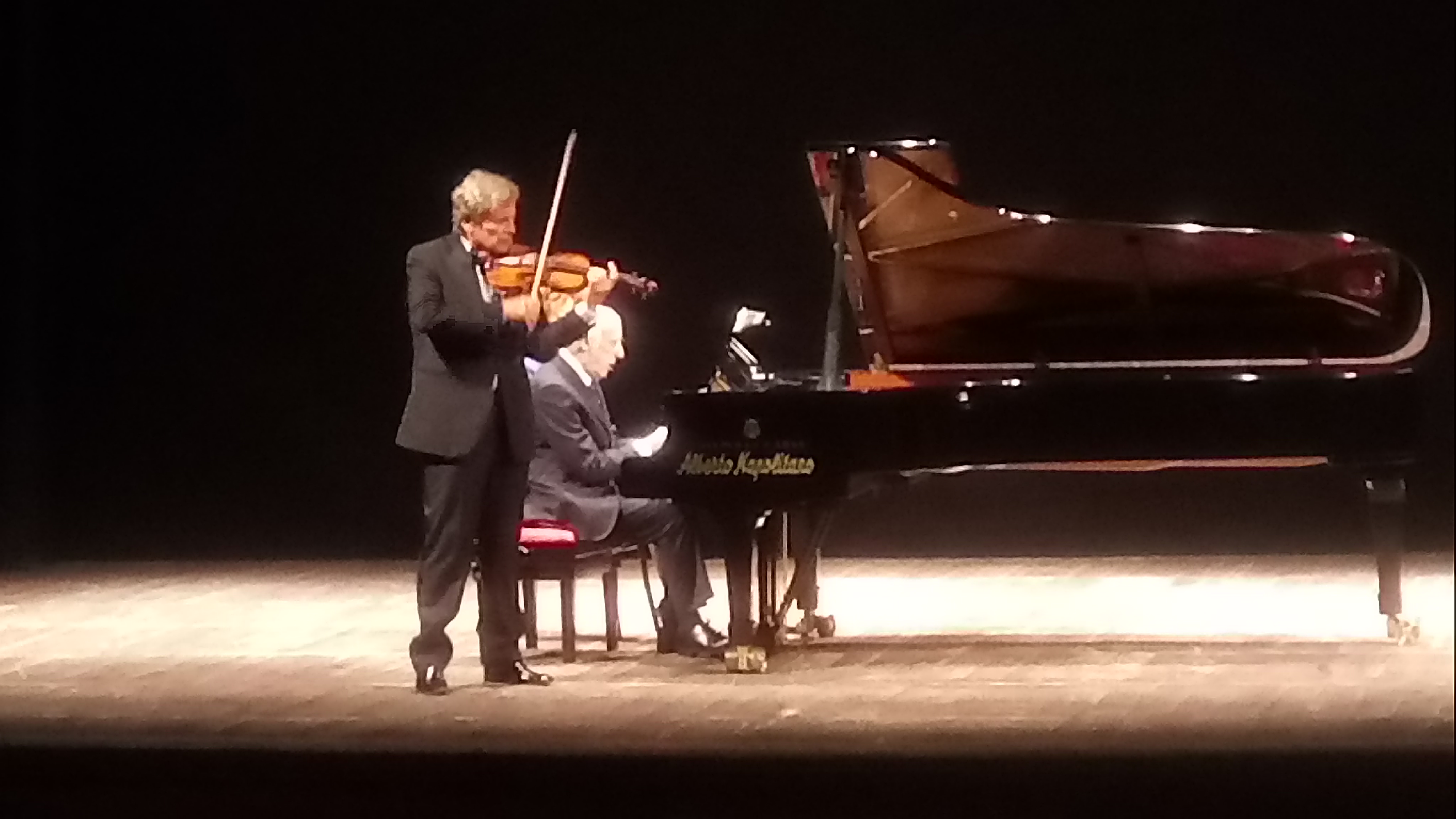 “La musica deve essere una passione che viene dal cuore e ognuno deve suonare secondo il suo temperamento e carattere. Come diceva Paganini l’importante, per emozionare gli altri, è emozionare se stessi”. E’ stato il Maestro Uto Ughi, considerato uno dei migliori violinisti al mondo, ad aprire il suo cuore, con semplicità, durante l’incontro al Teatro Verdi di Salerno, con oltre 600 studenti delle scuole salernitane: Monterisi, Calcedonia, Posidonia, e Alfano I di Salerno; Della Corte Vanvitelli e Balzico di Cava De’ Tirreni; Liceo Musicale e Scuola Media Romano di Eboli; Scuola Media Gatto di Battipaglia; Scuola Media di Lancusi e Scuola Media di Baronissi, che ieri mattina hanno assistito alle prove generali del Concerto Straordinario che si è tenuto in serata, sempre al Teatro Verdi, organizzato sinergicamente da tutti i componenti della grande famiglia rotariana salernitana: Rotary Club Salerno, presieduto da Gaetano Pastore; Rotary Club Salerno Est (Antonio Vairo); Rotary Club Salerno Picentia, (Giuseppe Giannattasio); Rotary Club Salerno Duomo ( Natalino Barbato); Rotary Club Salerno Nord dei Due Principati, (Michele Galderisi); Rotaract Club Salerno, (Anna Gallo); Rotaract Club Salerno Duomo, (Raffaele De Simone); Rotaract Salerno Campus dei Due Principati,(Vito Buonomenna); Club Inner Wheel Salerno Carf, ( Marisa Fiorillo Della Monica) e Club Inner Wheel Salerno Est, (Ornella Orlando); dal Comune di Salerno, nella persona del Sindaco Vincenzo Napoli; dalla Banca Monte Pruno, diretta dal dottor Michele Albanese; dall’Associazione Musicale “ Vigormusic”, presieduta dal Maestro Frano Vigorito, e dal “Gruppo Teda” amministrato dal dottor Francesco Caggiano. Il Maestro Uto Ughi con il suo violino, uno Stradivari del 1700, accompagnato al piano dal Maestro Bruno Canino ha eseguito il primo tempo della Sonata n.9 op.47 di Beethoven dedicata al violinista Kreutzer; due brani romantici del compositore cecoslovacco Antonin Dvorak e una fantasia sulla Carmen di Bizet trascritta dal violinista spagnolo, Pablo De Sarasate, considerato il Paganini della Spagna. Bis con “La Ridda dei folletti”, uno scherzo fantastico per violino e pianoforte composto dal violinista Antonio Bazzini, che pare abbia studiato con Paganini. Il Direttore Artistico dell’evento, il Maestro Franco Vigorito, noto flautista e concertista salernitano, che ha proposto al Maestro Uto Ughi e al Maestro Bruno Canino, con i quali collabora spesso, di venire a suonare a Salerno, ha chiamato sul palco i ragazzi delle scuole che, emozionati, hanno posto delle interessanti domande ai due musicisti. Il Maestro Uto Ughi ha ricordato di aver cominciato a suonare il violino all’età di cinque anni:” Bisogna iniziare presto lo studio di uno strumento musicale e non capisco quelli che volevano far approvare una legge per far accedere i giovani al Conservatorio dopo i 18 anni. Forse non capiscono nulla di musica”. Ughi ha spiegato che è molto importante coinvolgere i giovani nell’ascolto della musica classica: ”I musicisti devono uscire dalla loro torre d’avorio e spiegare ai giovani la bellezza della musica: abbiamo una miniera ricchissima di capolavori che potrebbero dare gioia a milioni di loro. I giovani sono il futuro della musica”. Il Maestro Ughi ha ricordato di essere venuto a Salerno qualche anno fa: ” Ho suonato nel quadriportico del Duomo di Salerno, una città che ha una grande tradizione musicale”. Il Maestro Bruno Canino, nato a Napoli “Anche se risiedo a Milano da 78 anni”, viene spesso a Salerno. Ai ragazzi ha consigliato di ascoltare la musica senza pregiudizi:” La musica per essere ascoltata non richiede competenze, ma disponibilità all’ascolto. Abbiamo bisogno di gente che ami la musica. La musica senza amore non si può fare. Abbiamo bisogno più di pubblico che di musicisti. Bisogna diffondere la cultura della musica attraverso eventi come questo”. Nella serata i Maestri Ughi e Canino ‘ coadiuvati dalla musicista Natascia Chiarlo, si sono esibiti eseguendo brani di Corelli, Beethoven, Camille Saint Saens , Pablo De Sarasate e Granados che hanno entusiasmato il pubblico salernitano che ha occupato tutti i 650 posti del Teatro Verdi.