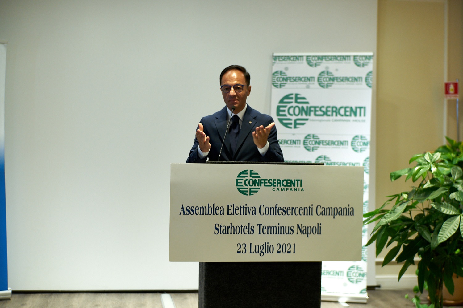 Vincenzo Schiavo ha ringraziato gli oltre 150 delegati presenti che lo hanno votato: «Negli ultimi 15 anni ho messo a disposizione la mia passione, il mio entusiasmo, le mie conoscenze, il mio tempo, e ricevere dopo così tanto tempo di affascinante e duro lavoro la riconferma per i prossimi 4 anni mi riempie il cuore di gioia ed entusiasmo». Ha inoltre stilato un breve bilancio delle attività di Confesercenti Campania tracciando, soprattutto, le linee programmatiche per il futuro delle imprese della regione. «Siamo orgogliosi di poter dire che Confesercenti Campania è stata sempre al fianco delle imprese in questi in questi 16 mesi e 501 giorni di pandemia e di sofferenza. Confesercenti rappresenta il corpo Intermedio tra lo Stato e l’Impresa: in tal senso abbiamo sempre avuto un numero verde attivo in tutto il lockdown, uno staff di 40 professionisti per offrire supporto a tutti i nostri imprenditori e commercianti, aiutandoli anche a ottenere finanziamenti e ristori».