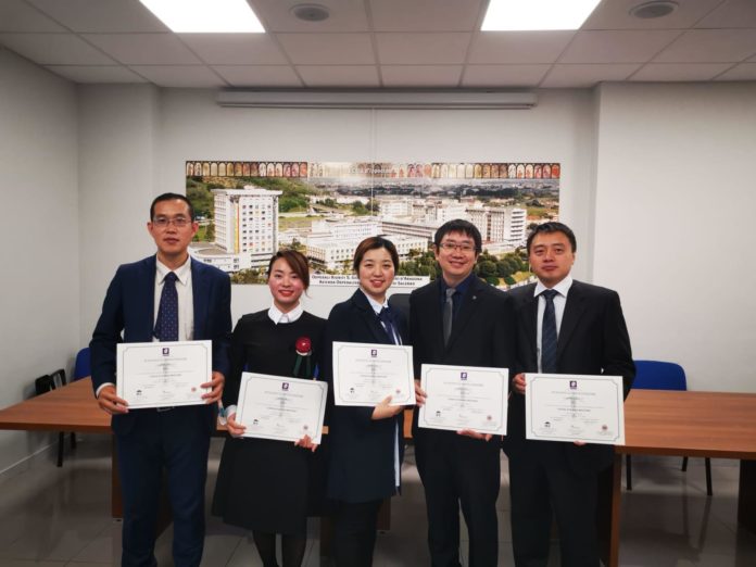 Si è conclusa questa mattina l’esperienza italiana dei primi cinque medici provenienti dalla città cinese di XUZHOU-JIANGSU e accolti al Plesso Ruggi dell’AOU di Salerno nell’ambito di “Crosss Science MediCina” progetto di scambio culturale promosso dall’Associazione LONGSHA, presieduta dal dott. Xiao Jian e dalla Fondazione Iuvant, il cui vice presidente, dott. Pasquale Fiore, ha partecipato attivamente all’accoglienza dei giovani professionisti.