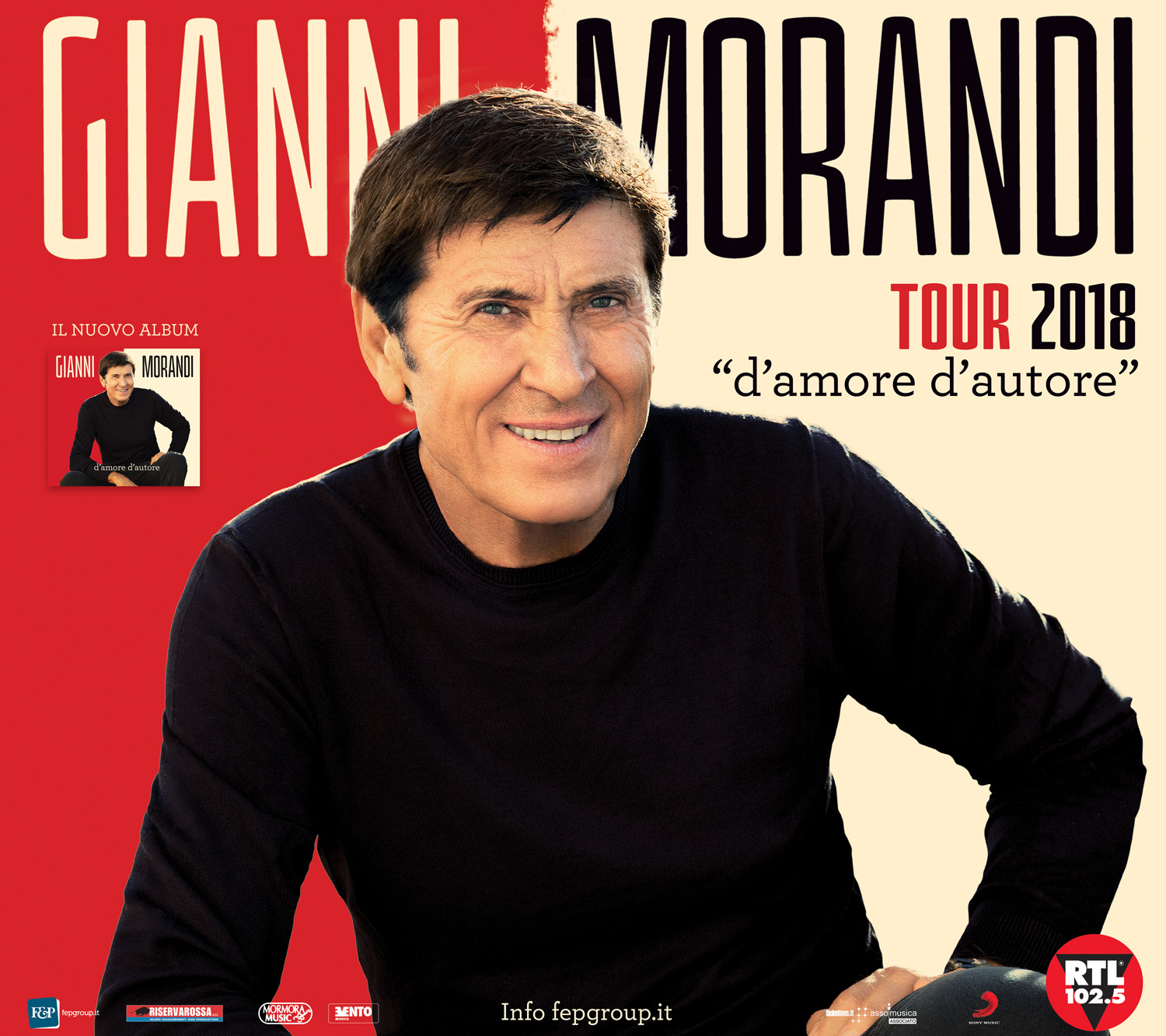 IL GIANNI MORANDI TOUR 2018 “D’AMORE D’AUTORE” Ha preso il via il 24 febbraio da Rimini – Rds Stadium, il Gianni Morandi Tour 2018 “d’amore d’autore”, il nuovo tour di Gianni Morandi nei più importanti palasport italiani. Un nuovo viaggio dal vivo di 20 date, tutti spettacoli unici in cui l’amore è il leit motiv di uno show imperdibile, con una tracklist di oltre 40 brani per più di due ore di live.