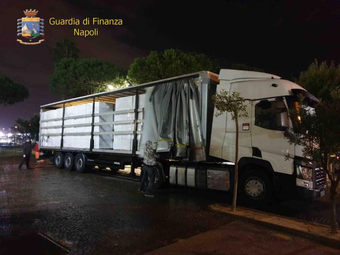In particolare, i finanzieri della Compagnia di Giugliano in Campania, dopo aver notato un furgone che per un lungo tragitto precedeva un Tir con targa polacca, hanno avviato un inseguimento che si è protratto fino a quando il camioncino e l’autotreno sono entrati all’interno dei magazzini di una società di logistica di Mercato San Severino (Salerno).