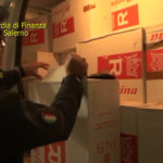 Dai successivi controlli e con l’ausilio di pattuglie delle fiamme gialle fatte confluire da Salerno, è stato individuato un capannone nel quale vi erano altri tre furgoni contenenti numerose casse di “bionde” per un peso complessivo di 8 tonnellate e 400 chilogrammi.