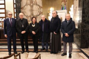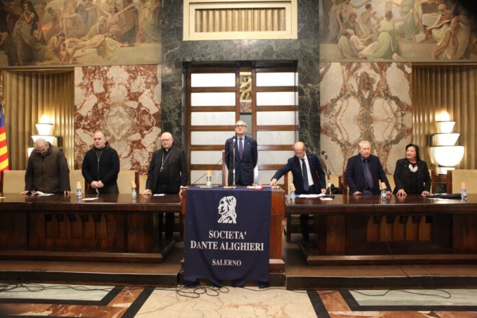 “Credenti o non credenti: tutti amano San Francesco che era una figura carismatica e che ancora oggi, a ottocento anni dalla sua morte, è ancora attuale. È stato un rivoluzionario che ha rotto gli schemi: ha anticipato l’elemento ecologico moderno e con la sua visita al Sultano in Egitto rappresenta uno degli elementi di punta del pacifismo moderno”. È stato il professor Alberto Granese, già Ordinario di Letteratura italiana presso la Facoltà di Lettere e Filosofia dell’Università degli Studi di Salerno, che ha analizzato la figura di San Francesco sotto diversi profili durante il  convegno dedicato a San Francesco d’Assisi, Patrono d’Italia, organizzato nel “Salone dei Marmi” del Comune di Salerno in occasione dell’ottavo centenario dalla morte del Santo, avvenuta nel 1226, dalla “Società Dante Alighieri”, Comitato di Salerno, presieduta dalla professoressa Pina Basile, Cavaliere della Repubblica, con il patrocinio del Comune di Salerno nella persona del Commissario Straordinario, il dottor Vincenzo Panico.  Il professor Granese, leggendo alcuni versi dello straordinario “Cantico delle Creature”, ha spiegato che San Francesco rappresenta tutti i cristiani:” In modo particolare anche noi italiani che lo sentiamo come un santo popolare”. Il dantista salernitano ha anche spiegato che Dante nella “Divina Commedia” idealizza la figura di San Francesco:” La idealizza nel momento in cui Francesco si sposa con Madonna Povertà. Francesco è l’alter Christus. Dante mette in evidenza Francesco attraverso la metafora potente e poetica delle nozze mistiche con la Povertà. Forse Francesco è la figura più importante della Commedia”. Il professor Granese, che ha anche declamato i versi di un suo componimento dedicato a San Francesco, ha sottolineato il gesto di coraggio di Papa Bergoglio che dopo la sua elezione scelse di chiamarsi Francesco:” È stato un grande gesto simbolico: fondamentale; un vero programma di azione”. Il professor Granese ha anche ricordato di come la figura del Santo sia stata trattata nella pubblicistica moderna:” lo storico Alessandro Barbero e lo scrittore Aldo Cazzullo hanno dedicato i loro recenti libri a San Francesco offrendone ritratti diversi”. Il convegno è iniziato con la toccante interpretazione del “Cantico delle Creature”, conosciuto come “Cantico di Frate Sole e Sorella Luna”, cantato, con grande coinvolgimento emotivo dall’architetto Alfredo Lupinelli che con la sua chitarra ha eseguito il celebre inno di lode in cui Francesco esprime gratitudine verso Dio attraverso la bellezza del Creato e il legame fraterno con tutte le creature: una preghiera tra gratitudine e lode al creatore. Il Dottor Vincenzo Panico, Commissario Straordinario del Comune di Salerno che ha sottolineato l’importanza del convegno dedicato a San Francesco:” Un Santo che è nel cuore di tutti: amato non solo da chi è cattolico e cristiano, ma anche da chi non appartiene al mondo cattolico perché i valori che ci ha tramandato sono trasversali: è un simbolo, sia per chi, come noi, ha il dono della fede, sia per chi questo dono non ce l’ha”. Monsignor Andrea Bellandi, Arcivescovo Metropolita di Salerno, Campagna e Acerno ha spiegato quanto sia estremamente attuale il messaggio di fratellanza universale di San Francesco:” In un tempo purtroppo funestato da conflitti la testimonianza di Francesco che ci invita alla fraternità, alla semplicità sia oltremodo preziosa. San Francesco ci aiuta a ricentrare lo sguardo su ciò che veramente è essenziale per vivere e di cui abbiamo bisogno in questi tempi”. Padre Raffaele Bufano, dell’Ordine dei Frati Minori della chiesa del Sacro Cuore di Gesù di Piazza Ferrovia ha ricordato che:” La figura di San Francesco d’Assisi rappresenta una delle esperienze più rivoluzionarie e durature nella storia dell’umanità, capace di mantenere una straordinaria attualità anche dopo oltre 800 anni dalla sua morte”. Padre Giampiero Canelli, dell’Ordine dei Frati Cappuccini, parroco della chiesa di “Maria Santissima Immacolata” di Piazza San Francesco ha spiegato che la figura di San Francesco è trasversale e universale: È un simbolo di pace, fraternità e solidarietà: capace di unire credenti e non credenti. Il suo messaggio di povertà, dialogo e amore per il creato supera i confini religiosi, influenzando la cultura e le coscienze collettive. San Francesco d’Assisi è come una pianta che continua a fiorire e a germogliare: la sua è un’eredità spirituale e umana in continua evoluzione. Si definiva un semplice, ma in realtà era un genio!”. La Professoressa Pina Basile, Presidente della Società Dante Alighieri Comitato di Salerno ha ripercorso la vita di San Francesco:” Nacque nel 1181, figlio del ricco mercante di stoffe Pietro Bernardone e di Pica de Bourlémont. Dopo una giovinezza agiata, si convertì nel 1205, abbandonando le ricchezze, per fondare l’Ordine dei Frati Minori, votandosi alla povertà e alla predicazione del Vangelo: non era povero, ma ha abbracciato la povertà.  Dante, che attinge molto dalla letteratura francescana, colloca San Francesco nel Paradiso, nel Cielo del Sole (IV cielo), tra gli spiriti sapienti che danzano in corone concentriche. La sua figura viene celebrata nel Canto XI da San Tommaso d’Aquino, che ne narra la vita come “sposo di Madonna Povertà. Il 3 ottobre del 1226, a soli 45 anni, Francesco viene accolto dalla sorella morte. Il 16 luglio del 1228 Papa Gregorio IX lo proclamò Santo. Il 18 giugno del 1939 Papa Pio XII proclamò San Francesco d’Assisi patrono primario d’Italia”.  (Foto di Antonio Rinaldi).  Aniello Palumbo