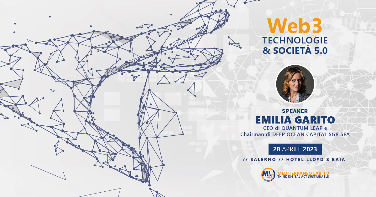 In vista del convegno “Web 3, Tecnologie & Società 5.0” che si terrà a Salerno il 28 Aprile, abbiamo intervistato Emilia Garito, Ceo di Quantum Leap e Chairman di Deep Ocean Capital Sgr Spa, speaker del terzo panel del convegno dal titolo ” Blockchain e Tecnologie Web3“.