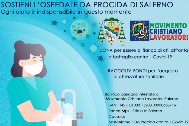 Ogni aiuto è indispensabile. Il Movimento Cristiano Lavoratori, con il patrocinio dell’Arcidiocesi di Salerno-Campagna-Acerno concesso dall’Arcivescovo S.E. Mons. Andrea Bellandi, ha intrapreso una campagna di raccolta fondi per l’acquisto di un ventilatore polmonare, elettrocardiografo o defibrillatore. Le attrezzature sanitarie saranno donate all’ospedale “Da Procida” di Salerno, in fase di trasformazione in Covid Hospital. “Tutti dobbiamo fare la nostra parte – afferma Maria Rosaria Pilla, presidente del Movimento Cristiano Lavoratori di Salerno – e ringrazio già da questo momento chi potrà fornire il suo piccolo ma importante contributo. Credo sia fondamentale, nel nostro territorio e nella nostra città, attrezzare un ospedale per fare in modo di poter curare le persone affette da Covid-19. Lo stato di avanzamento delle donazioni sarà pubblicato sul sito www.mcl.it e sulla pagina facebook del Movimento Cristiano Lavoratori di Salerno. Dobbiamo restare a casa, rispettare le regole e fare la nostra parte per ritornare ad abbracciarci. Penso, in questo momento, all’albero della vita. Questa radice così profonda e con tanti rami, mi auguro che quest’albero possa tornare presto a fiorire”. Attraverso l’operato dell’associazione di promozione sociale di lavoratori cristiani, di solidarietà e volontariato senza alcuna finalità di lucro, la donazione può essere effettuata tramite bonifico bancario intestato a Movimento Cristiano Lavoratori Salerno; Causale: Sosteniamo il Da Procida contro il COVID 19; Iban: IT 42E0103015200 000006387161 Banca Mps-Filiale di Salerno – Agenzia Sede Corso Vittorio Emanuele, 112.