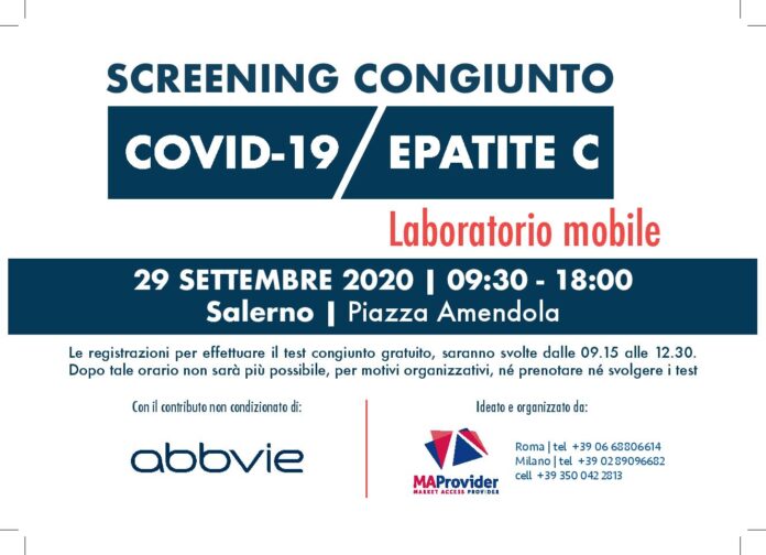 Arriva in Campania il roadshow itinerante promosso da AISF (Associazione Italiana per lo Studio del Fegato) e SIMIT (Società Italiana di Malattie Infettive e Tropicali) con il patrocinio dell’Associazione Pazienti “EpaC Onlus”. Lunedì 28 settembre a Piazza Dante a Napoli e martedì 29 settembre a Piazza Amendola a Salerno sarà presente un “ambulatorio mobile” in cui il personale medico effettuerà gratuitamente i test sierologici per Covid-19 ed Epatite C a quanti, su base volontaria, vorranno sottoporsi ai test abbinati. Il risultato sarà consegnato dopo 30 minuti direttamente in loco e in forma anonima.