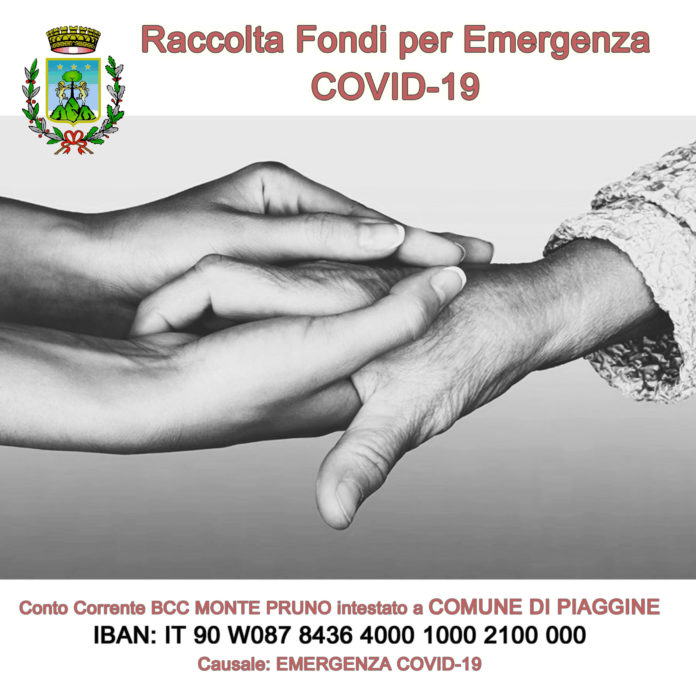 È partita una Campagna di Raccolta Fondi attraverso un Conto Corrente dedicato all’emergenza COVI-19 ed intestato al Comune.