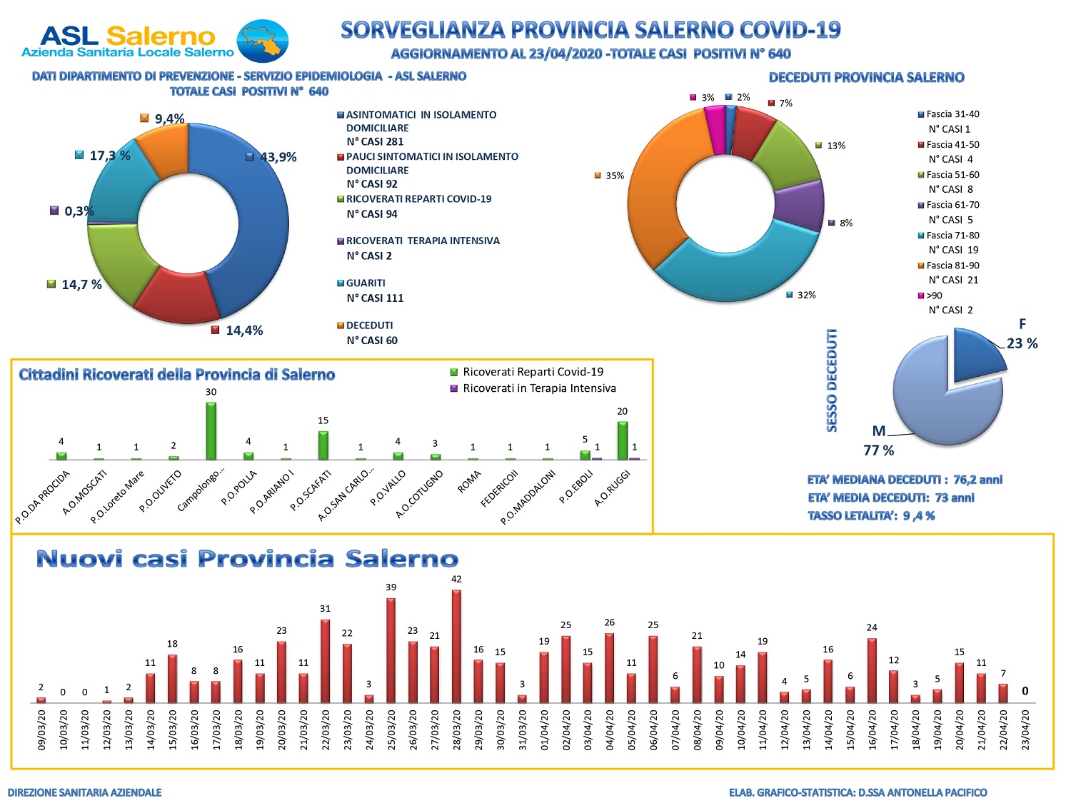 E’ quanto emerge dalla rilevazione Dati epidemiologici ASL Salerno aggiornati al 22.4.2020 ore 10