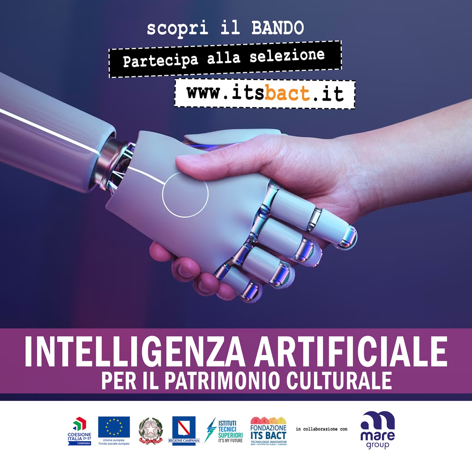Un corso all’avanguardia quello del “Tecnico Superiore per la promozione e il marketing delle filiere turistiche e delle attività culturali” a indirizzo “Intelligenza Artificiale per la gestione del Patrimonio e delle Attività Culturali”, in collaborazione con il partner internazionale Mare Group. Azienda che accompagna le PMI e le PA nella trasformazione continua che caratterizza i nostri tempi, Mare Group sviluppa innovazione sulle frontiere tecnologiche più promettenti, e in particolare fornisce tecnologie e prodotti abilitanti, sviluppo software, integrazione sistemi e supporto alla realizzazione di progetti digitali, implementando la visione dell’umanesimo tecnologico in molteplici campi applicativi, anche per la valorizzazione dei Beni Culturali.