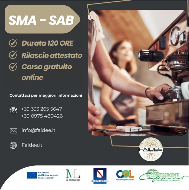 “Tra i corsi che eroghiamo – afferma la presidente di Confesercenti Vallo di Diano, la dottoressa Maria Antonietta Aquino –, voglio soffermarmi sul Corso SMA-SAB rivolto a coloro che hanno dai 18 ai 64 anni e intendono avviare un’attività nel settore della somministrazione di alimenti e bevande; e sul Corso dedicato alle Competenze digitali di base.