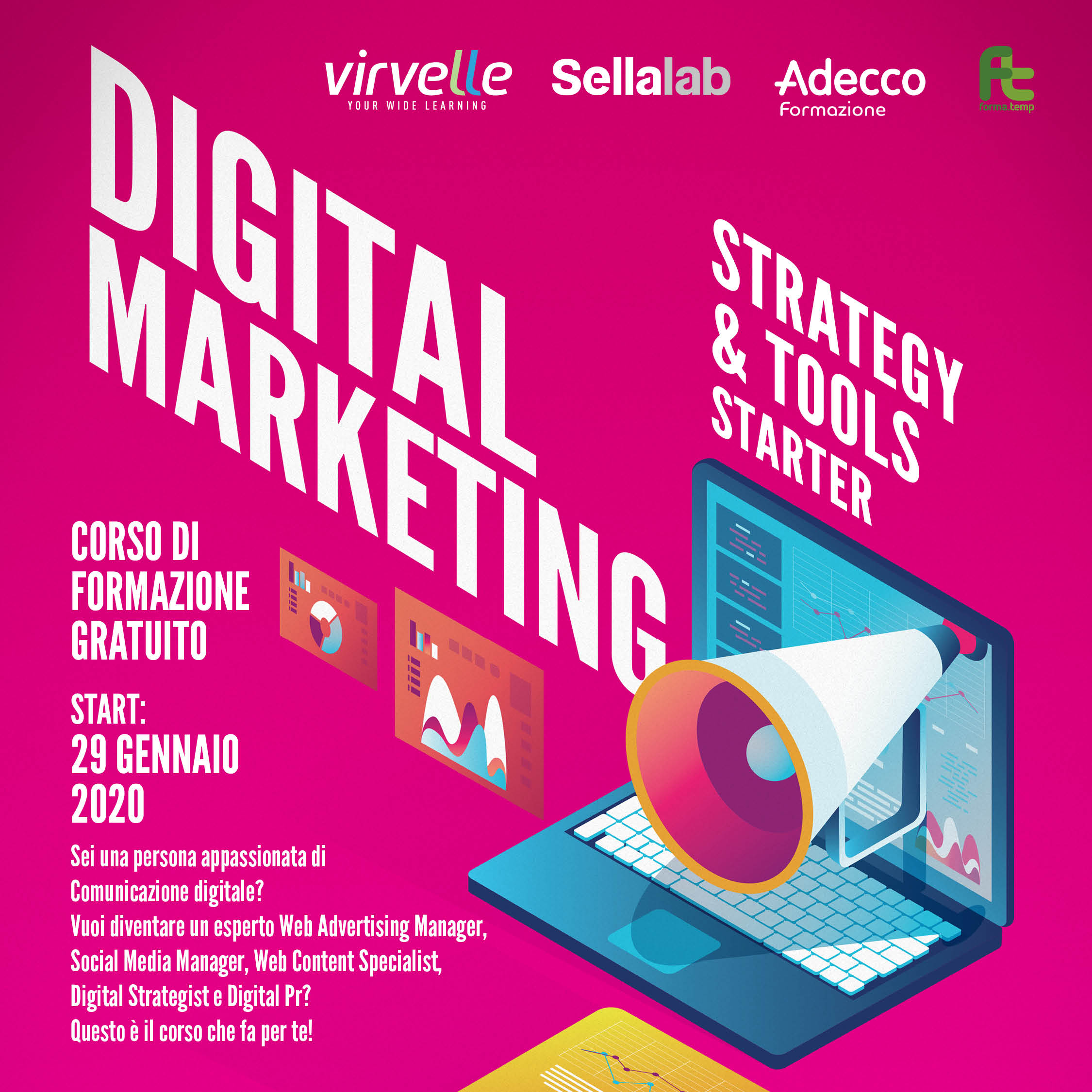 In collaborazione con Adecco Formazione, Virvelle propone il corso gratuito “Digital Marketing Strategy and Tools – Starter”, finanziato da Formatemp, che avrà inizio mercoledì 29 gennaio 2020, nella sede di Sellalab Salerno, in Corso Garibaldi, 203. Sulla scorta delle più recenti indicazioni del Marketing digitale, l’utilizzo di strumenti efficaci aiuta a migliorare la reputazione online, che risulta necessaria durante la ricerca di un’occupazione.