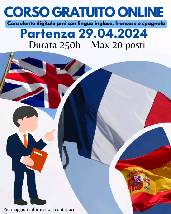 Per venti disoccupati , inoccupati e studenti di tutta Italia è in partenza un nuovo progetto formativo online intitolato “Consulente pmi con lingua inglese, francese e spagnola”.
