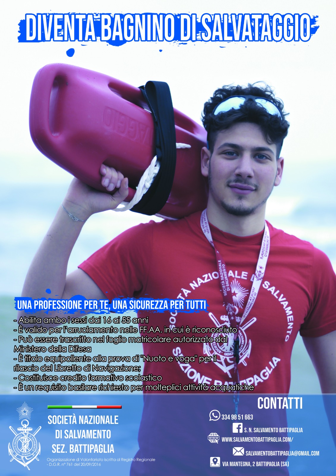 Si precisa che i nostri corsi sono aperti ai nostri associati e che quindi per partecipare al Corso per BAGNINO DI SALVATAGGIO è necessario prima fare richiesta per diventare socio della nostra associazione, compilando apposita domanda (in allegato) e versando la quota associativa di €10 (dieci) sul C/C 1014189193 o iban IT46V0760115200001014189193 (Poste Italiane) intestato a SOCIETÀ’ NAZIONALE DI SALVAMENTO SEZIONE BATTIPAGLIA.