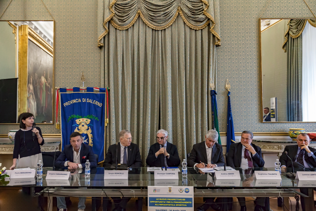 Il 14 aprile 2018, presso il Salone “G. Bottiglieri” della Provincia di Salerno, si è svolto l’incontro con Andrea Abodi, presidente dell’Istituto di Credito Sportivo, dal tema “Le nuove prospettive ed opportunità per il finanziamento all’impiantistica sportiva” promosso ed organizzato dal Presidente CONI Campania Sergio Roncelli e dal componente della giunta Nazionale del CONI Guglielmo Talento.