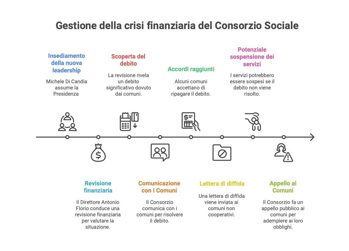 Nei mesi scorsi, per volontà del presidente Di Candia e del CdA, attraverso diversi incontri convocati dal Consorzio con i Comuni in debito, si è cercato di addivenire a una soluzione concertata per superare la situazione di crisi. Con alcuni enti è stato possibile raggiungere un accordo e avviare un percorso di rientro, mentre altri hanno continuato a ignorare gli appelli del Consorzio. A questo punto si è reso necessario l’invio, da parte del direttore Antonio Florio, di una lettera di diffida come “extrema ratio” per sbloccare la situazione.