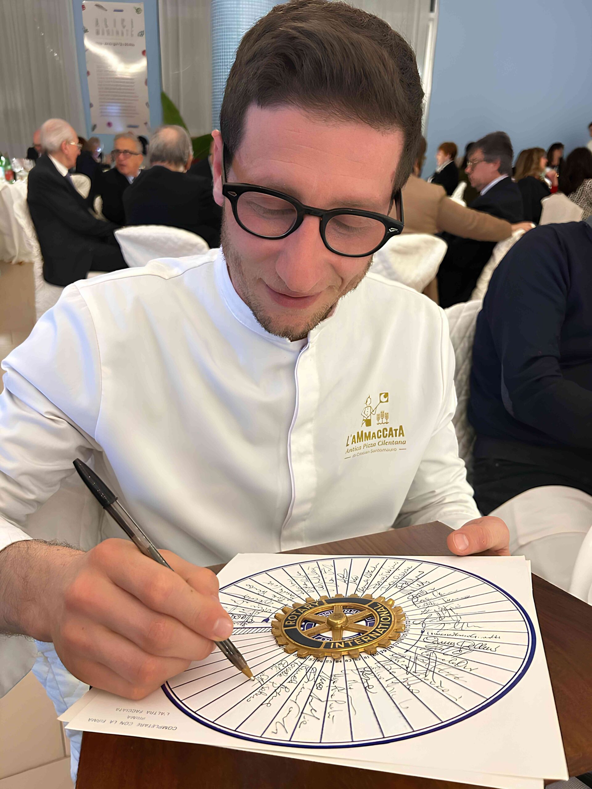Un evento di solidarietà che fa bene al territorio, si rinnova con la terza edizione de Le Buone Stelle, presso l’Istituto IIS Ferrari di Battipaglia. Il Distretto Rotary 2101 e il Rotary Club di Battipaglia hanno organizzato una serata che ha unito alta gastronomia e impegno sociale, coinvolgendo tre chef stellati e tre maestri dell’arte bianca. L’occasione è stata perfetta per Cristian Santomauro, che ha presentato l’Ammaccata Gialla del Cilento, una versione moderna della tradizionale Ammaccata. Fior di latte, pomodoro giallo, alici di Menaica aggiunte dopo la cottura, polvere di cappero, polvere di asparago, zest di limone: questi gli ingredienti che caratterizzano questa innovativa interpretazione. Non è mancata, però, la versione classica, anch’essa protagonista della serata. Preparata con impasto ai grani tradizionali, condita con sugo di pomodoro quarantino cotto nel ruoto nel forno a legna, cipolla, origano e cacioricotta stagionato di capra cilentana, l’Ammaccata tradizionale fa parte dell’elenco nazionale dei prodotti agroalimentari tradizionali italiani (PAT).