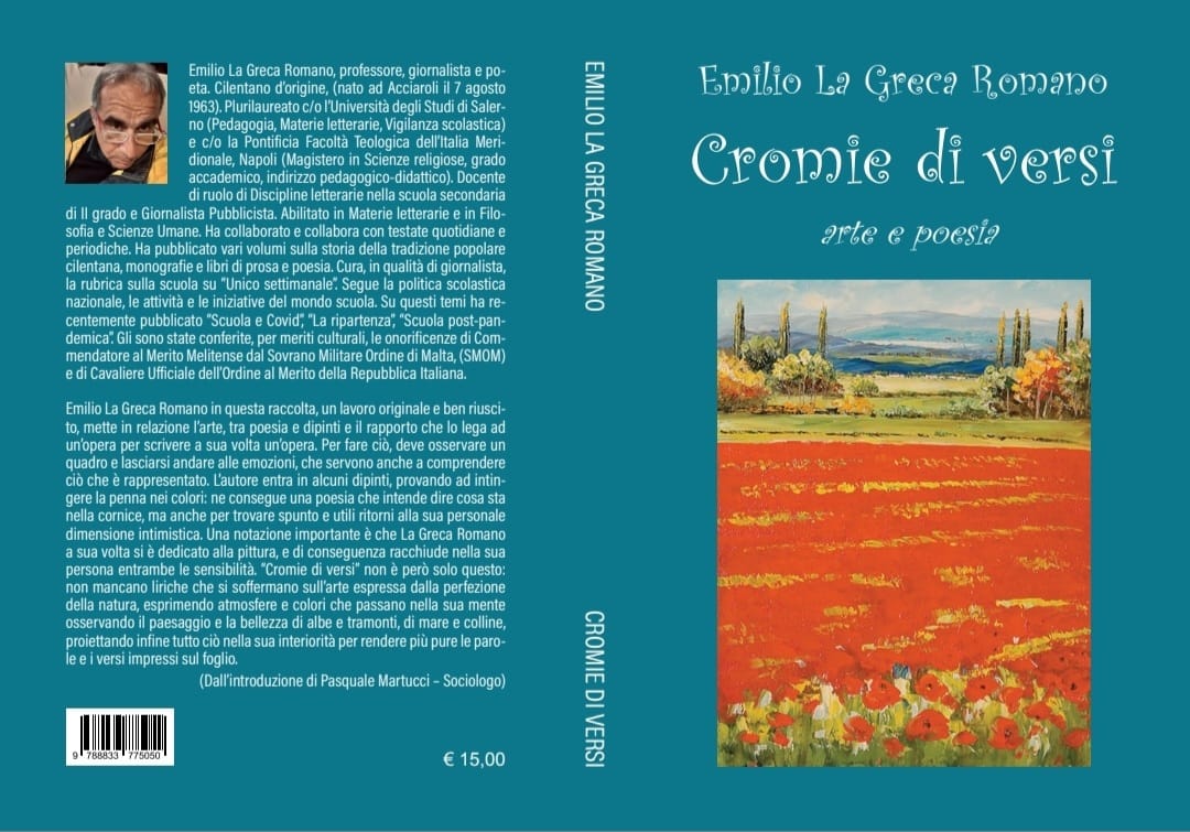 Arte tra poesia e dipinti, il rapporto del poeta con quello che può rappresentare il suo porsi dinanzi ad un’opera d’arte per scrivere a sua volta un’opera. Emilio La Greca Romano, nella raccolta: “Cromie di versi”, si cimenta su ciò: osserva un importante quadro e lascia andare in versi le sue emozioni, che servono anche a comprendere ciò che è rappresentato, anche perché il poeta ha la particolare sensibilità nel cogliere molte sfumature e produrre con i suoi versi tante altre connessioni. L’autore entra in alcuni dipinti, provando ad intingere la penna nei colori; ne consegue una poesia che intende dire cosa sta nella cornice, ma anche per trovare spunto e utili ritorni alla sua personale dimensione intimistica. Una notazione importante è che La Greca Romano a sua volta si dedica alla pittura, e di conseguenza racchiude nella sua persona entrambe le sensibilità.