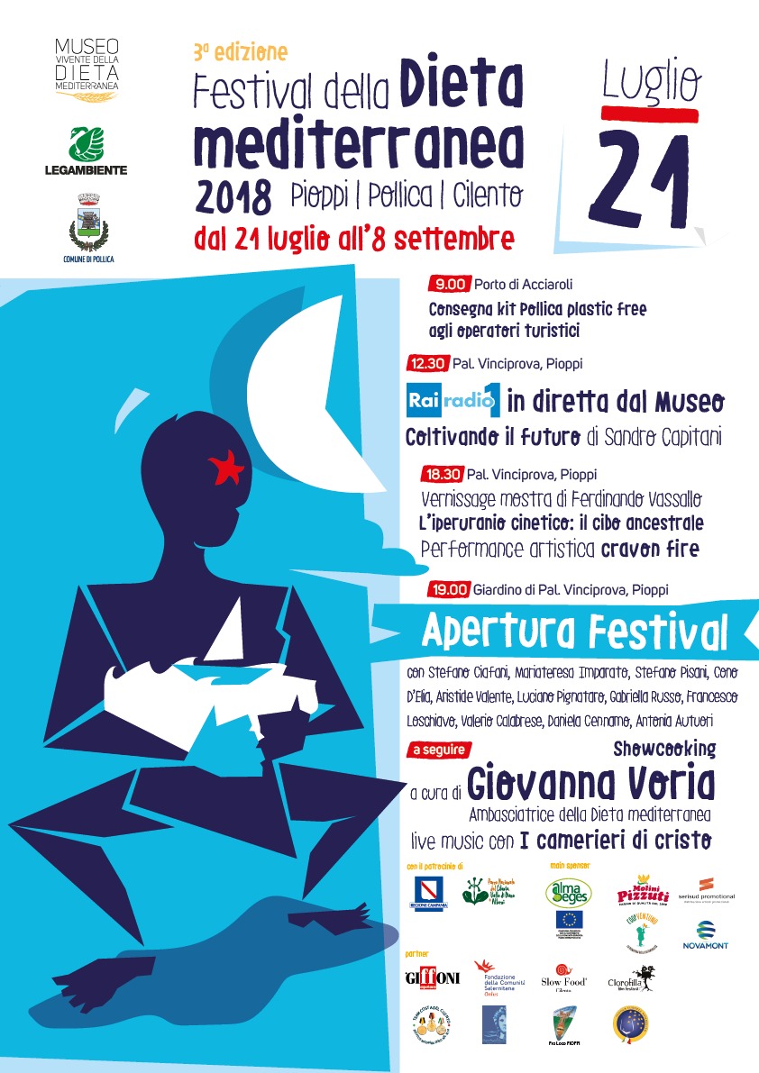 Nel Cilento sta per tornare l’evento più lungo dell’estate. Sabato 21 luglio si aprirà la terza edizione del Festival della Dieta mediterranea, organizzato dal Museo Vivente della Dieta mediterranea di Pioppi, da Legambiente e dal Comune di Pollica con il patrocinio morale della Regione Campania e del Parco Nazionale del Cilento, Vallo di Diano e Alburni.