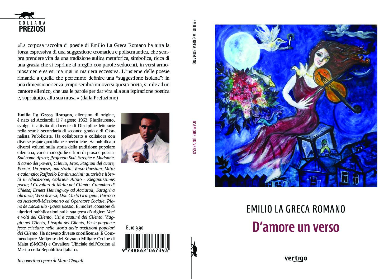 L’Autore, Emilio La Greca Romano, cilentano di origine. E’ nato ad Acciaroli, il 7 agosto 1963. Plurilaureato. Svolge le attività di docente di Discipline letterarie nella scuola secondaria di secondo grado e di Giornalista Pubblicista. E’ abilitato, inoltre, in Filosofia e Scienze Umane. Ha collaborato e collabora con diverse testate quotidiane e periodiche. Ha pubblicato diversi volumi sulla storia della tradizione popolare cilentana, varie monografie e libri di prosa e poesia. (E’ Autore delle seguenti pubblicazioni: Sud come Africa; Profondo Sud; Streghe e Madonne; Il canto dei poveri; Cilento; Eros; Stagioni del cuore; Poesie; Un paese, una storia; Verso Paestum; Mitra e calamaio; Raffaello Lambruschini: autorità e libertà in educazione; Gabriele Altilio – Elegantissimus poeta; I Cavalieri di Malta nel Cilento; Cammino di Chiesa; Ernest Hemingway ad Acciaroli; Saragni a oltranza; Versi diversi; Don Carlo Grangetti, Parroco ad Acciaroli-Missionario ed Operatore Sociale; Plano de Laczarulo – paese poesia. E’, inoltre, coautore di ulteriori pubblicazioni sulla sua terra d’origine: Voci e volti del Cilento, Usi e costumi del Cilento, Viaggio nel Cilento, I borghi del Cilento, Feste pagane e feste cristiane nella storia delle tradizioni popolari del Cilento). Ha ricevuto diverse onorificenze; fra le diverse quella di Commendatore Melitense del Sovrano Militare Ordine di Malta, (SMOM) e di Cavaliere Ufficiale dell’Ordine al Merito della Repubblica Italiana.