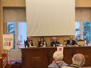 La prefazione e la presentazione del testo, scritto in italiano con versione in inglese, sono state curate da due eccellenti dantisti: il professor Alessandro Masi, Segretario Generale della Società Dante Alighieri, e il professor Rino Caputo, Professore ordinario di Letteratura italiana all’Università Tor Vergata di Roma e Direttore della Rivista Internazionale Dante. La Direttrice dell’Archivio di Stato, la dottoressa Fortunata Manzi, ha ricordato che gli Archivi di Stato conservano la memoria della nostra Nazione e che la sala dove si è tenuto l’incontro è dedicata a Paolo Emilio Bilotti:” Fu il direttore dell’Archivio di Stato di Salerno dal 1892 al 1927. È stato anche il responsabile di una grande collezione numismatica più importante d’Italia; di circa undicimila pezzi custodita gelosamente presso il nostro Archivio”. La Dottoressa Manzi ha raccontato anche dell’importante patrimonio archivistico presente nell’Archivio di Stato:” Abbiamo pergamene databili al IX-X secolo e documenti dell’antica Provincia del Principato Citeriore. Conserviamo anche tutti i documenti della Provincia di Salerno dall’Unità d’Italia in poi. La dottoressa Manzi ha anche parlato della “Cappella di San Ludovico”, di epoca Angioina, dalla quale attualmente si accede all’Archivio interessato da lavori di ristrutturazione. Il Consigliere Comunale con delega alla Cultura, il dottor Ermanno Guerra, ha portato i saluti del Sindaco Vincenzo Napoli e lodato l’attività della Società Dante Alighieri:” Coinvolge con continuità le intelligenze migliori della nostra città. Ha anche dato una spinta importante affinché si inaugurasse una piazza sul Lungomare dedicata a Dante Alighieri”. Ha collaborato alla organizzazione dell’incontro l’Associazione Culturale dell’Università di Salerno “UNI IN STRADA” presieduta dal professor Rino Cuccurullo che ha annunciato un incontro su “Dante e la Medicina” che si terrà quanto prima all’Ordine dei Medici di Salerno. Durante la serata è stato presentato anche il nuovo libro curato dalla professoressa Concetta Basile che racchiude tutti i documenti e le foto degli eventi organizzati dalla Società Dante Alighieri dal 2011 al 2022.